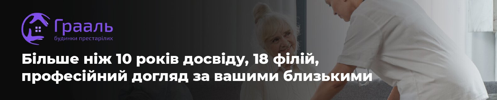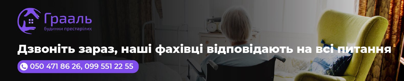 Пансіонат для людей похилого віку «Грааль» – це можливість людям похилого віку з комфортом доживати свої золоті роки, а для їхніх близьких – впевненість у тому, що буде надана вся необхідна медична допомога та турбота. Тут люди похилого віку можуть спілкуватися і перебувати в колі однодумців, а не на лікарняному ліжку, проходити реабілітацію, спілкуватися з рідними у зручний час.